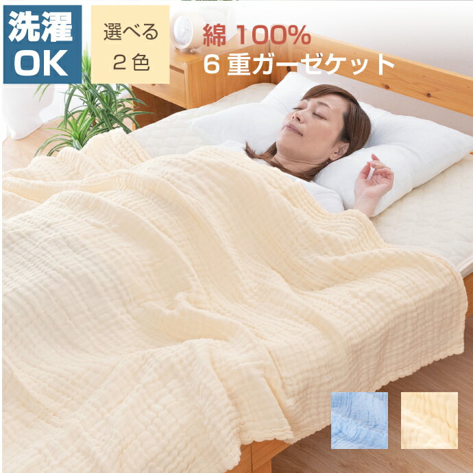 6重ガーゼケット シングル 140×190cm 綿100% 選べる2色 ブルー アイボリー ケット コットン 洗える 肌掛け 肌布団 夏布団