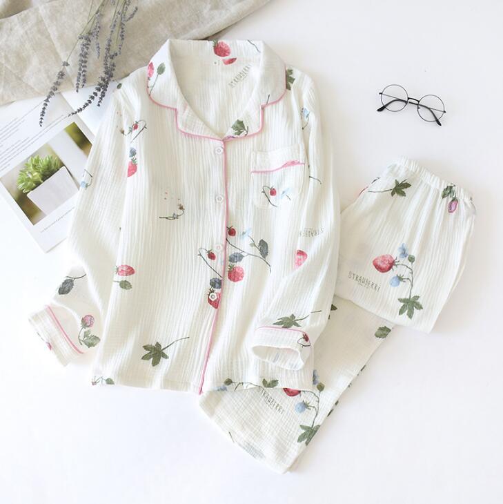 二枚送料無料♪ レディース パジャマ 二重ガーゼ ルームウェア ナイトウェア 長袖 前開き セットアップ コットンパジャマ 部屋着 パジャマ かわいい 春秋寝巻き 3色 M-XL