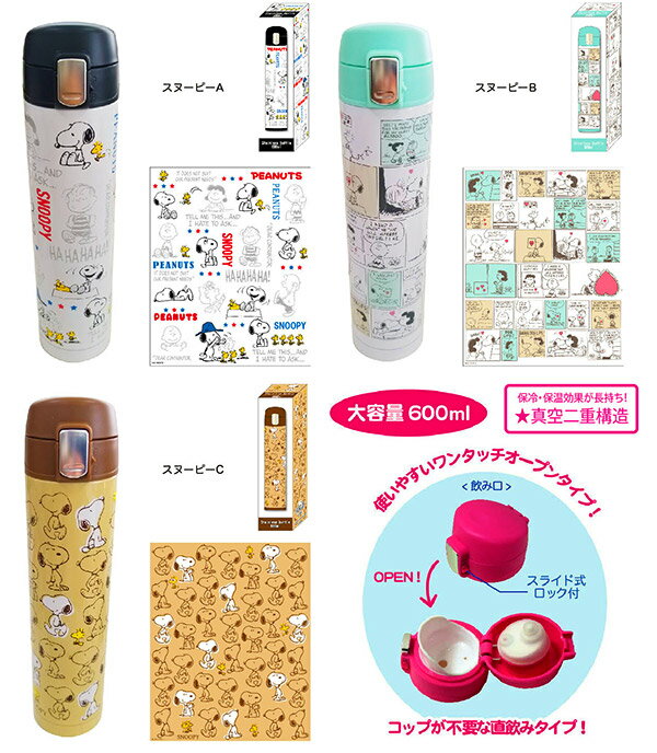 人気キャラクター、スヌーピーのかわいいステンレスボトルです。